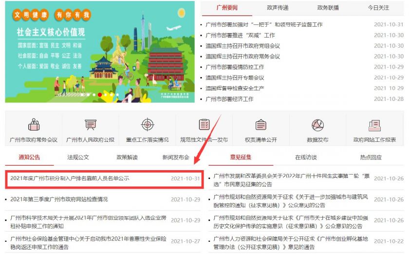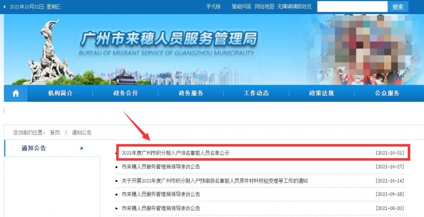 2021年度广州市积分制入户申报及预审排名靠前受理工作已完成。根据《广州市人民政府办公厅关于印发广州市积分制入户管理办法的通知》(穗府办规〔2020〕11号)相关规定,现对排名靠前的10050人名单在广州市政府门户网站和广州市来穗人员服务管理局门户网站予以公示。