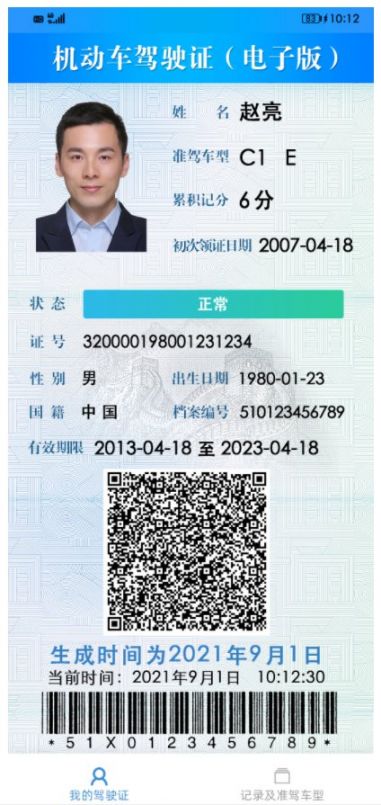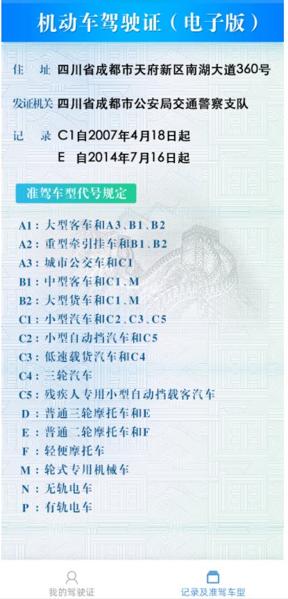 电子驾驶证由正页和副页两部分组成。其中,正页主要包括驾驶证基本信息、电子证生成时间、用于验证信息的二维码和一维码等内容;副页主要包括驾驶人住址、发证机关、驾驶记录以及准驾车型代号规定等内容。